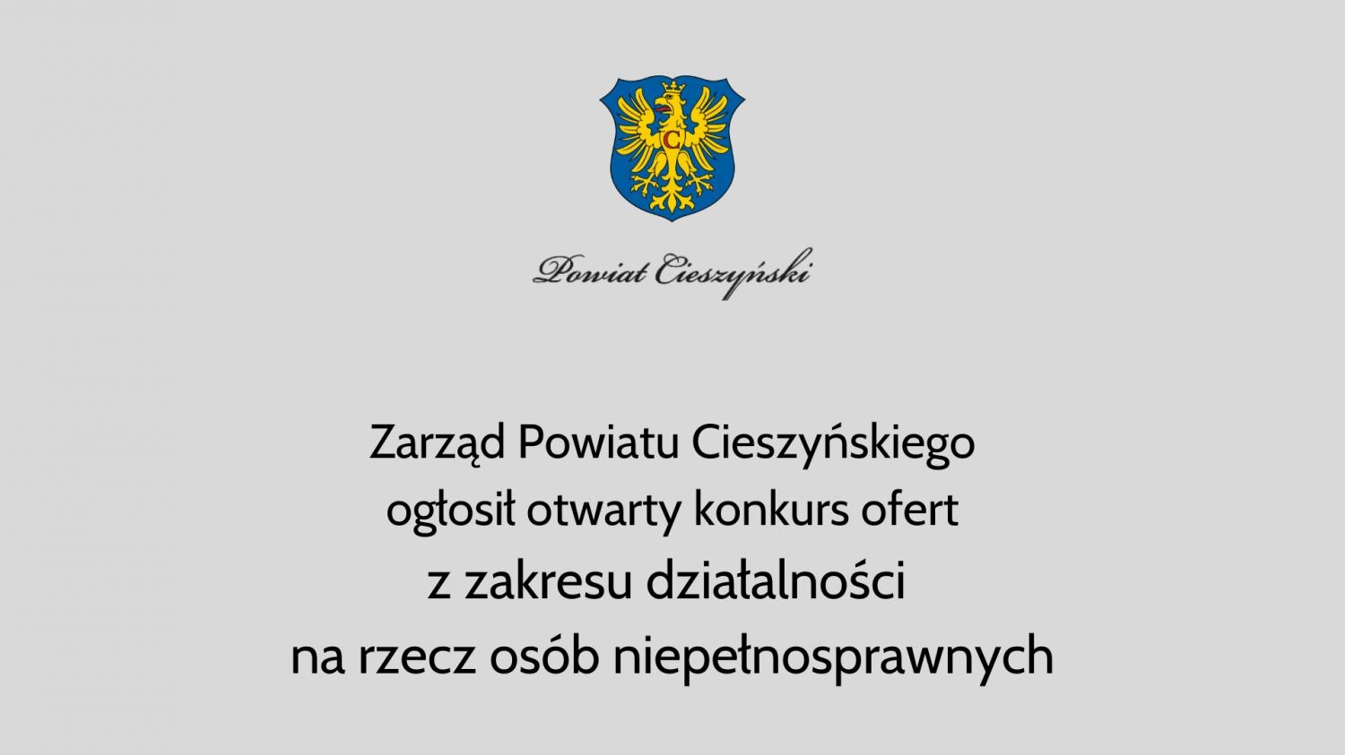 Zarząd Powiatu Cieszyńskiego ogłosił otwarty konkurs ofert z zakresu działalności na rzecz osób niepełnosprawnych