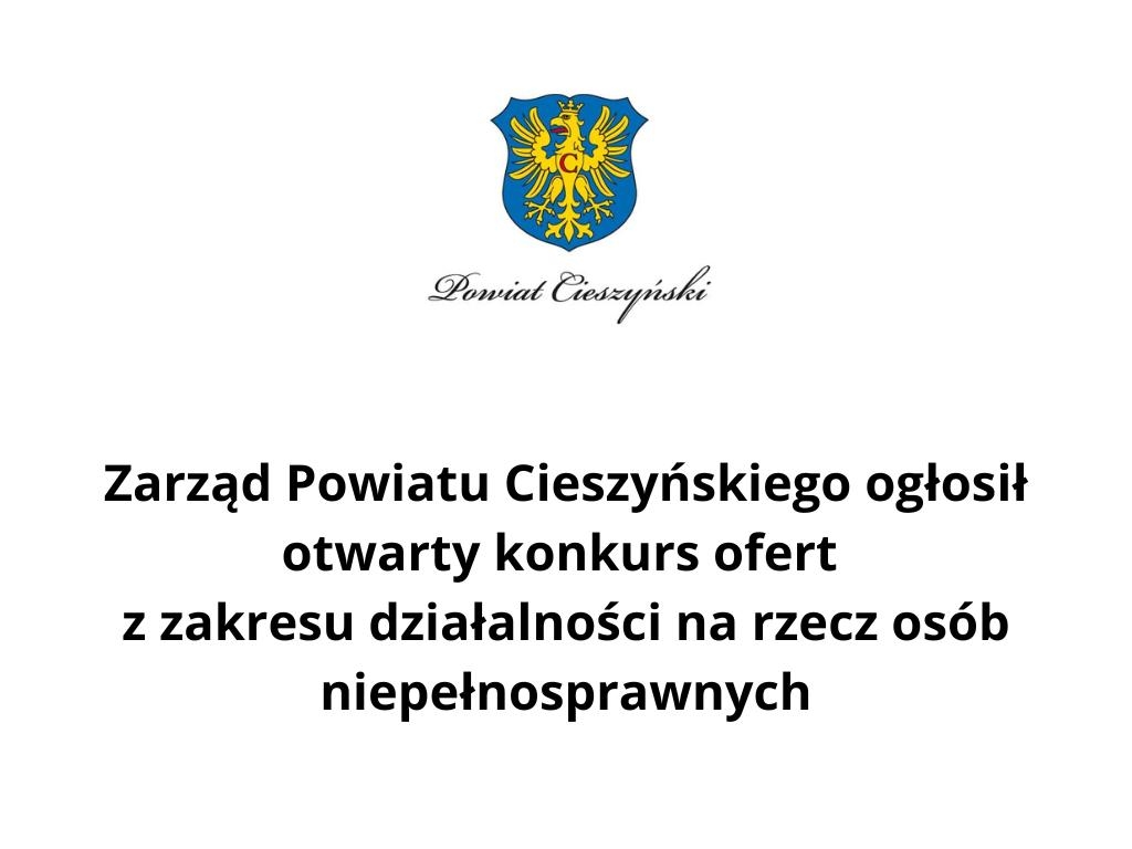 Zarząd Powiatu Cieszyńskiego ogłosił otwarty konkurs ofert z zakresu działalności na rzecz osób niepełnosprawnych