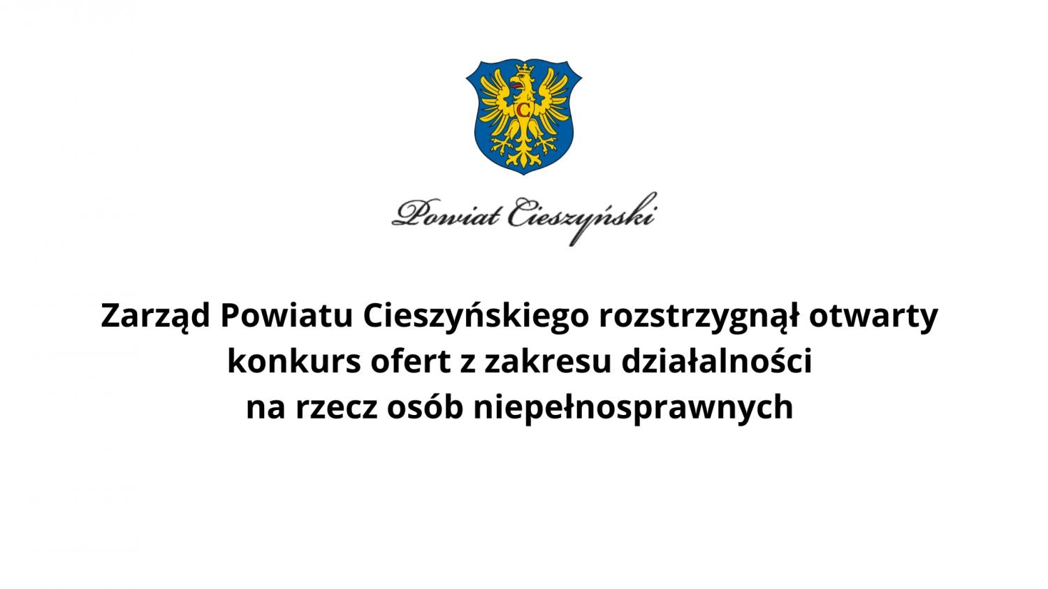 Zarząd Powiatu Cieszyńskiego rozstrzygnął otwarty konkurs ofert na zlecanie przez Powiat Cieszyński zadań z zakresu działalności na rzecz osób niepełnosprawnych dotyczących rehabilitacji społecznej osób niepełnosprawnych.