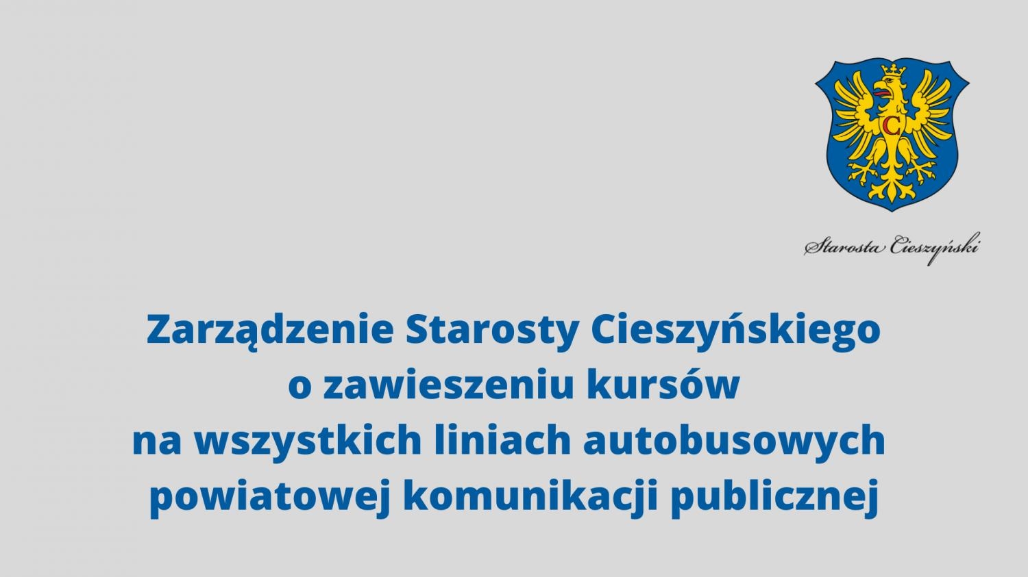 Zarządzenie Starosty Cieszyńskiego o zawieszeniu kursów na wszystkich liniach autobusowych powiatowej komunikacji publicznej