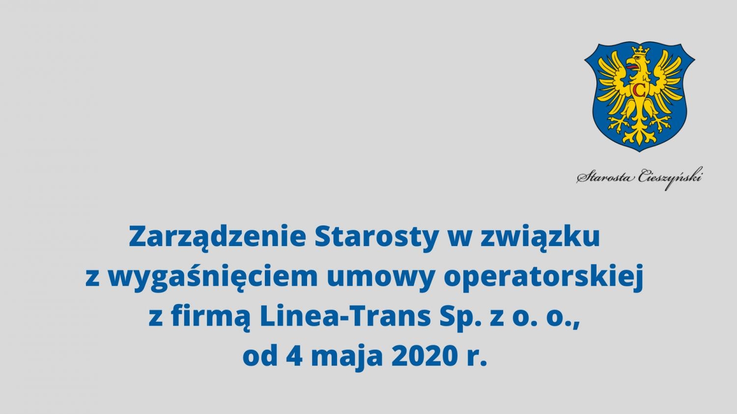 Zarządzenie Starosty w związku z wygaśnięciem umowy operatorskiej z firmą Linea-Trans Sp. z o. o., od 4 maja 2020 r.