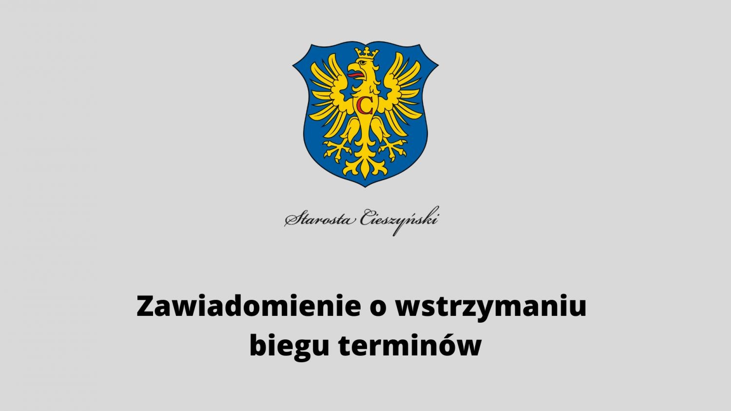 Zawiadomienie Starosty Cieszyńskiego o wstrzymaniu biegu terminów