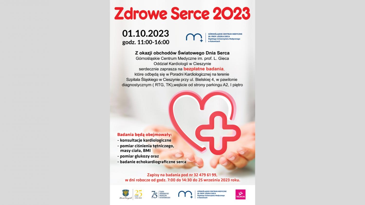 1 października 2023 r., od godz. 11:00-16:00, z okazji obchodów Światowego Dnia Serca, Górnośląskie Centrum Medyczne im. prof. L. Gieca oddział Kardiologii w Cieszynie, serdecznie zaprasza na bezpłatne badania, które będą obejmowały:
