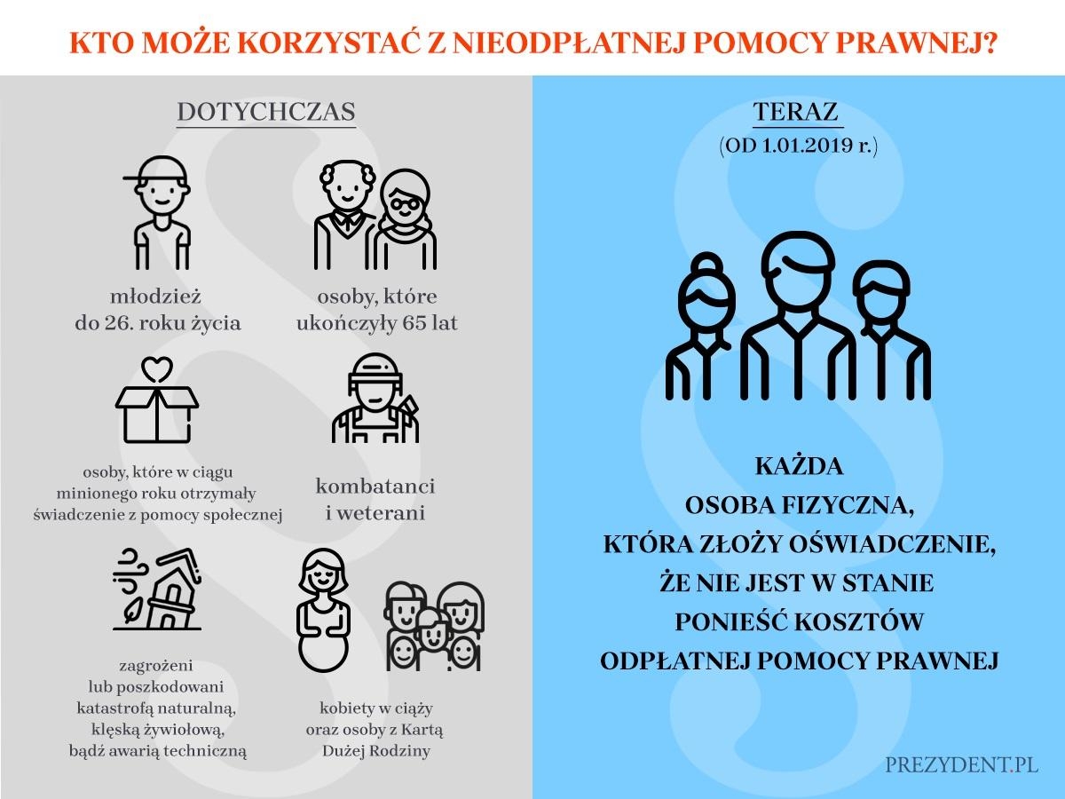 Od 01.01.2019 r. weszła w życie znowelizowana ustawa z dnia 5 sierpnia 2015 roku o nieodpłatnej pomocy prawnej, nieodpłatnym poradnictwie obywatelskim oraz edukacji prawnej, która wprowadziła w życie niżej wymienione zmiany: