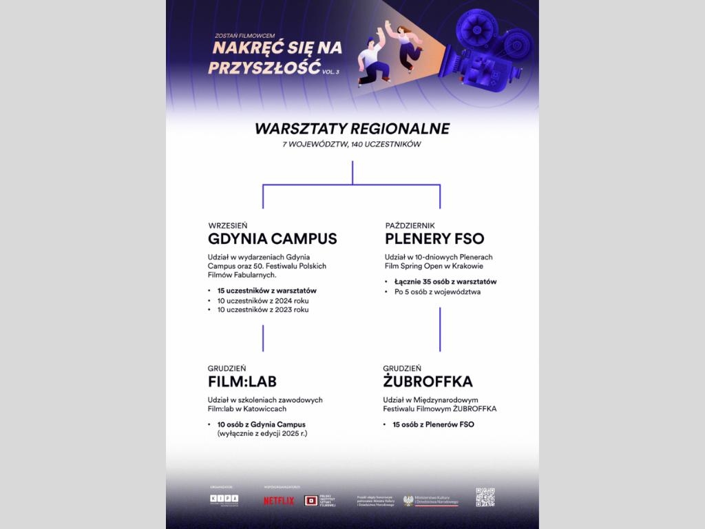 Nakręć się na przyszłość vol. 3 to trzecia edycja warsztatów pozwalających rozpocząć karierę w branży kreatywnej w Polsce. Program obejmujący 3-dniowe spotkania w siedmiu województwach organizuje Krajowa Izba Producentów Audiowizualnych (KIPA), Netflix i Polski Instytut Sztuki Filmowej. Nabór uczestników trwa do 30 maja 2025.