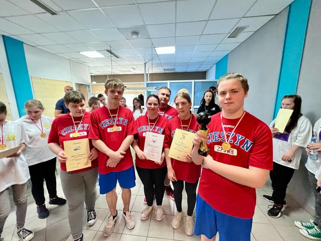 W dniu 15 maja reprezentacja Zespołu Placówek Szkolno-Wychowawczo-Rewalidacyjnych w Cieszynie wzięła udział w XIX MIĘDZYSZKOLNYM TURNIEJU KRĘGLARSKIM SZKÓŁ SPECJALNYCH w Skoczowie. W turnieju rywalizowały ze sobą 4 drużyny w kategorii dziewcząt i chłopców ze Skoczowa, Bielska-Białej i Cieszyna. Nasza drużyna w składzie: Natalia Juroszek, Natalia Brejza, Wiktoria Kawulok, Mateusz Łysek, Jakub Orzepowski i Kacper Najda godnie reprezentowała naszą szkołę. Dziewczyny zdeklasowały rywalki zdobywając I miejsce drużynowo oraz I, II i III miejsce indywidualnie z największą ilością punktów. Chłopcy mieli ciężką przeprawę i bardzo mocnych rywali, a o ostatecznym wyniku decydowała ostatnia kolejka rzutów. Lepsi okazali się rywale. Ostatecznie drużyna zajęła III miejsce, z czego jesteśmy dumni !!! Tak trzymać drużyno :)