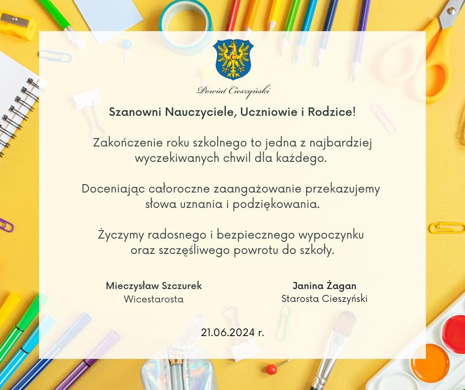Życzymy radosnego i bezpiecznego wypoczynku oraz szczęśliwego powrotu do szkoły.
