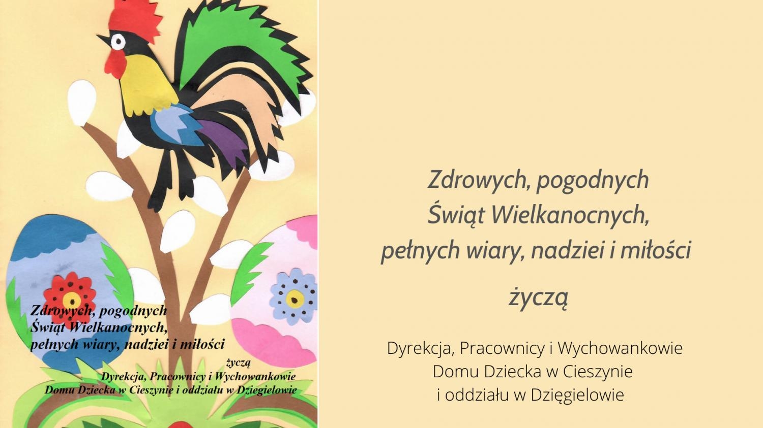 Życzenia Wielkanocne od Dyrekcji, Pracowników i Wychowanków Domu Dziecka w Cieszynie i Oddziału w Dzięgielowie
