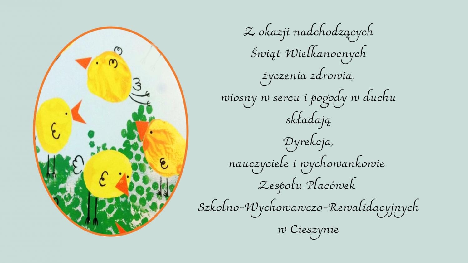 Życzenia Wielkanocne od Dyrekcji, Pracowników i Wychowanków Zespołu Placówek Szkolno-Wychowawczo-Rewalidacyjnych w Cieszynie