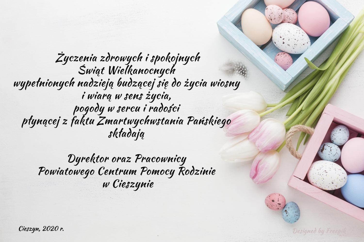 Życzenia Wielkanocne od Dyrekcji, Pracowników Powiatowego Centrum Pomocy Rodzinie w Cieszynie