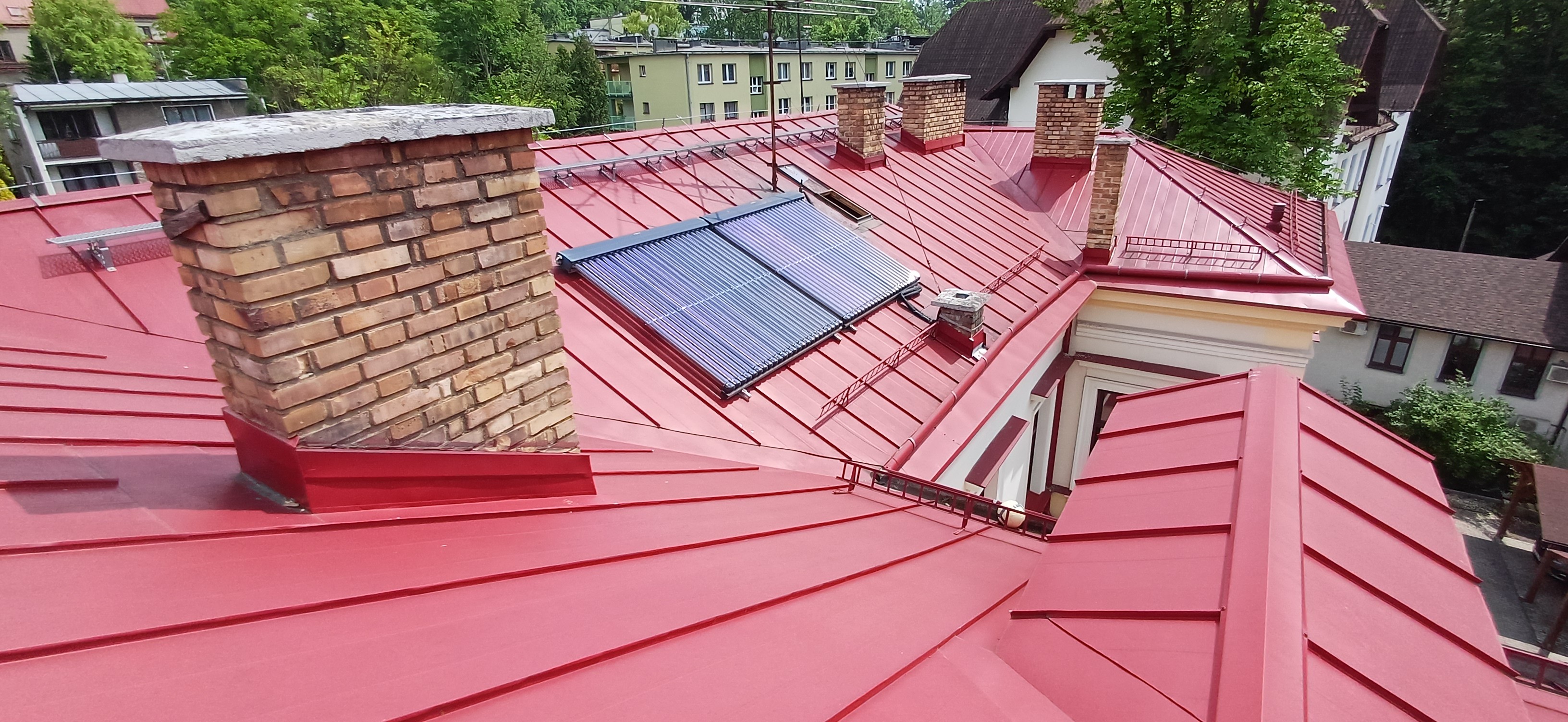 - roboty blacharsko-dekarskie (wymianę wszystkich obróbek blacharskich),